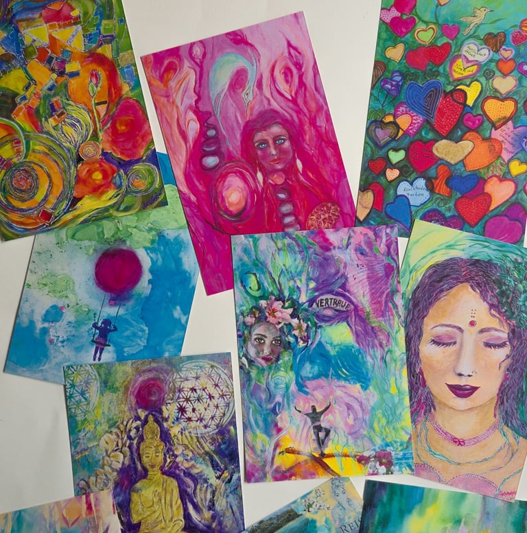 Ich bin Margi, Künstlerin für intuitive Soulpaintings. In meiner Kunst verbinde ich Intuition, Natur und Spiritualität. Viele meiner Werke entstehen in einem freien, fließenden Prozess – Farben und Formen entwickeln dabei ihre eigene Dynamik. So entstehen einzigartige Bilder, die berühren, inspirieren und Raum für eigene Gedanken und Gefühle lassen.