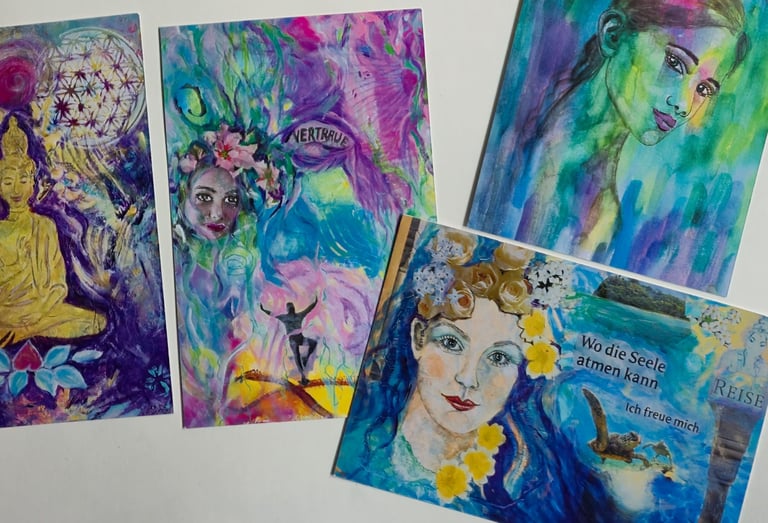 Ich bin Margi, Künstlerin für intuitive Soulpaintings und handgemalte Aquarelle. In meiner Kunst verbinde ich Natur, Spiritualität und Intuition. Viele meiner Werke entwickeln sich in einem freien, fließenden Prozess – Farben und Formen folgen dabei ihrer eigenen Dynamik. So entstehen einzigartige Bilder, die berühren, inspirieren und Raum für eigene Gedanken und Gefühle lassen.